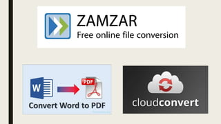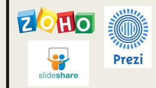 The document categorizes existing online platforms for developing ICT content. It lists the main categories of online platforms as presentation/visualization platforms, cloud computing, social media, mapping, file management, and web page creation. Examples are given for each category, including Prezi, Google Drive, Facebook, Google Maps, Zamzar, and WordPress.