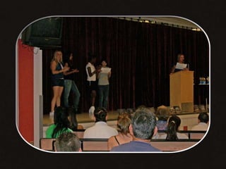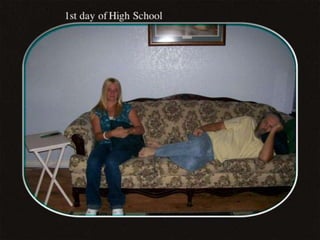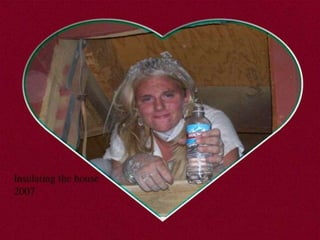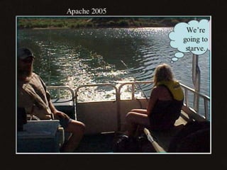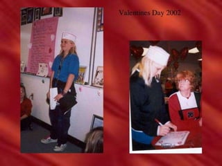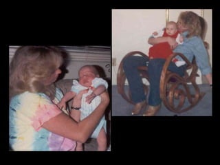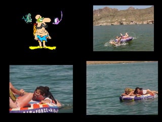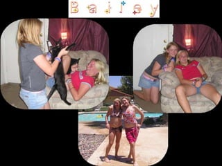 This document appears to be a collection of photos from various years including 1993, 2005, and 2006. The photos depict a lion stuffed animal, a damaged car, a lake, a woman cutting onions, and volleyball teams. Captions offer brief descriptions and reactions to the pictured events and scenes.