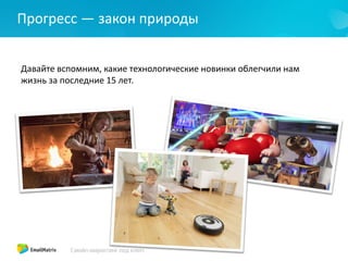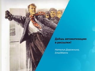 Документ обсуждает автоматизацию email-рассылок, описывая различные типы автоматизированных писем, включая автореспондеры и триггерные письма. Приведены примеры транзакционных писем с подробностями их настройки и статистикой конверсий для компании aroma-butik. Завершается документ советом по экспериментированию и созданию эффективных email-кампаний.