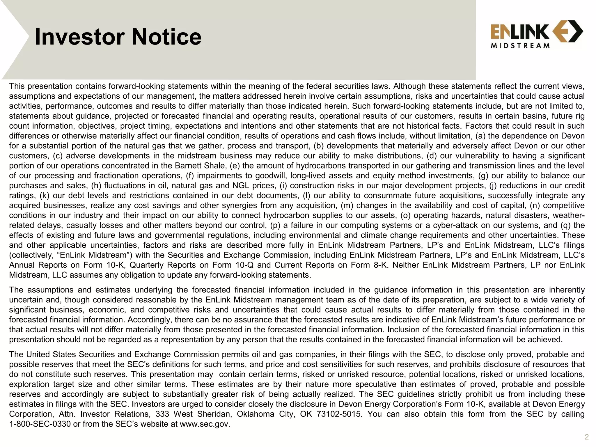 This document provides an overview of Jefferies Energy Conference and includes forward-looking statements and notices about the presentation. It discusses EnLink Midstream's 3rd quarter 2016 financial highlights including refining their consolidated adjusted EBITDA guidance range to $760-790 million, achieving approximately $201 million in adjusted EBITDA before non-controlling interest for ENLK in 3Q16, and a debt ratio of approximately 3.75 times. It also includes notices about non-GAAP financial measures used and forward-looking statements.