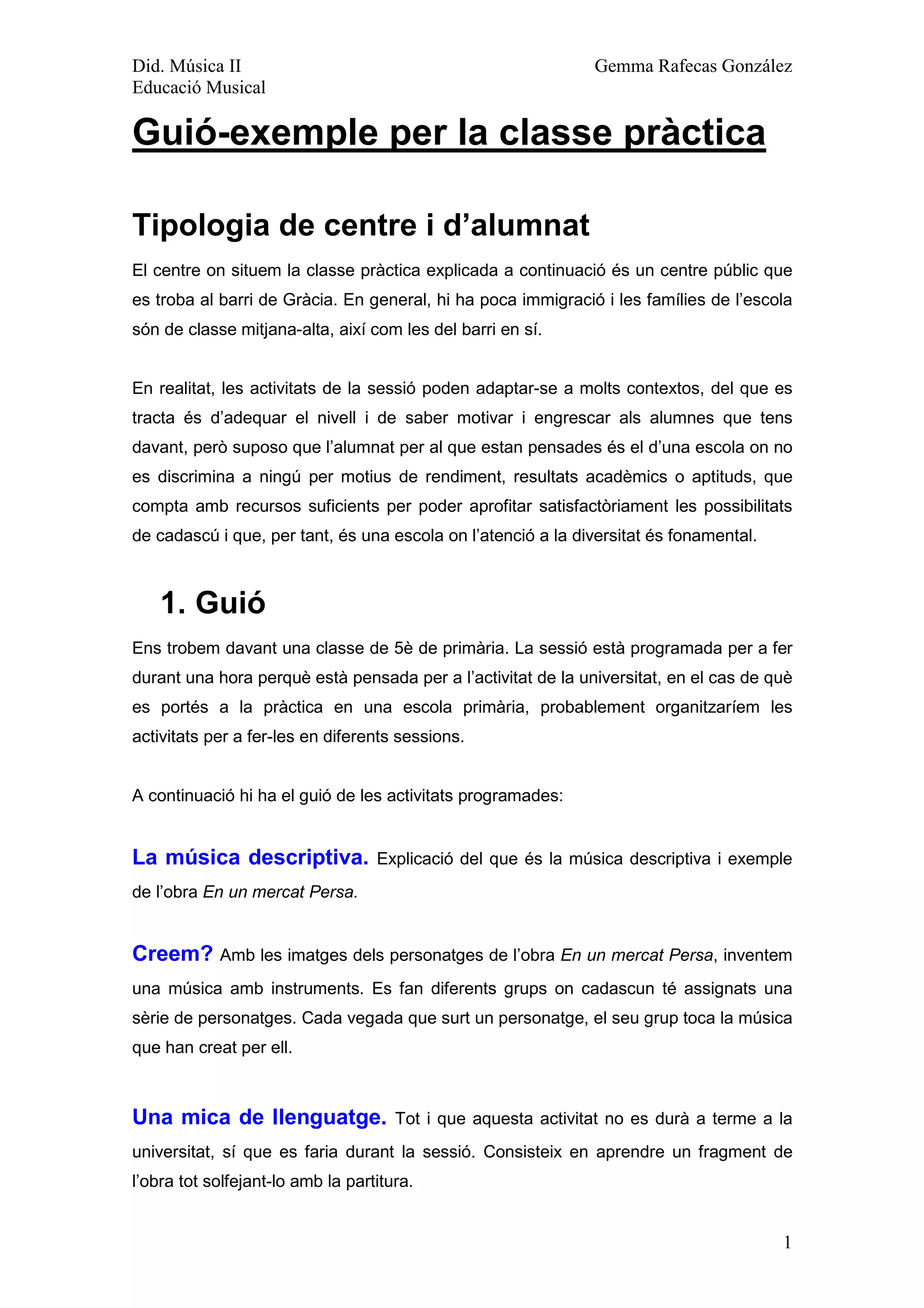 A continuació, presentem el guió de la classe pràctica, les diferents activitats que