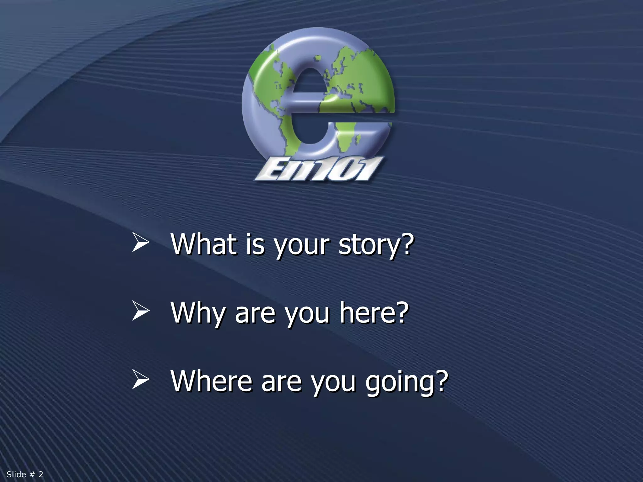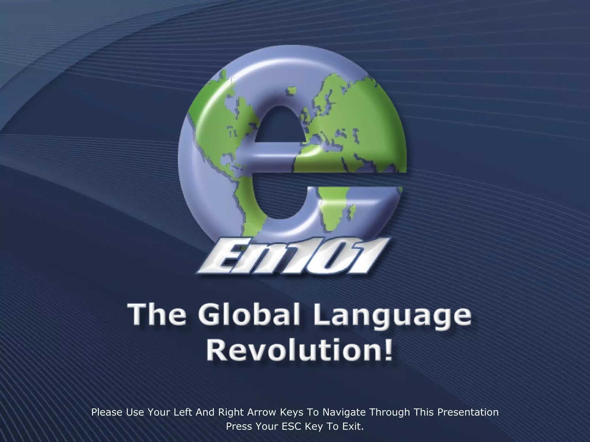 This document is a presentation about En101, an online language education company. It discusses En101's mission to provide affordable language education globally through an online platform. It outlines En101's language learning packages and features, as well as the opportunity to earn income by enrolling others in the programs.