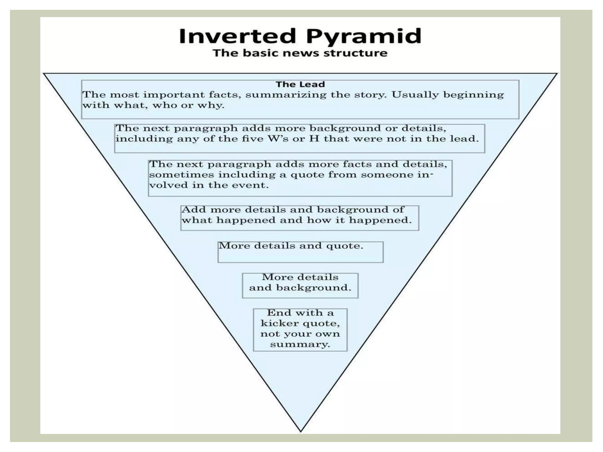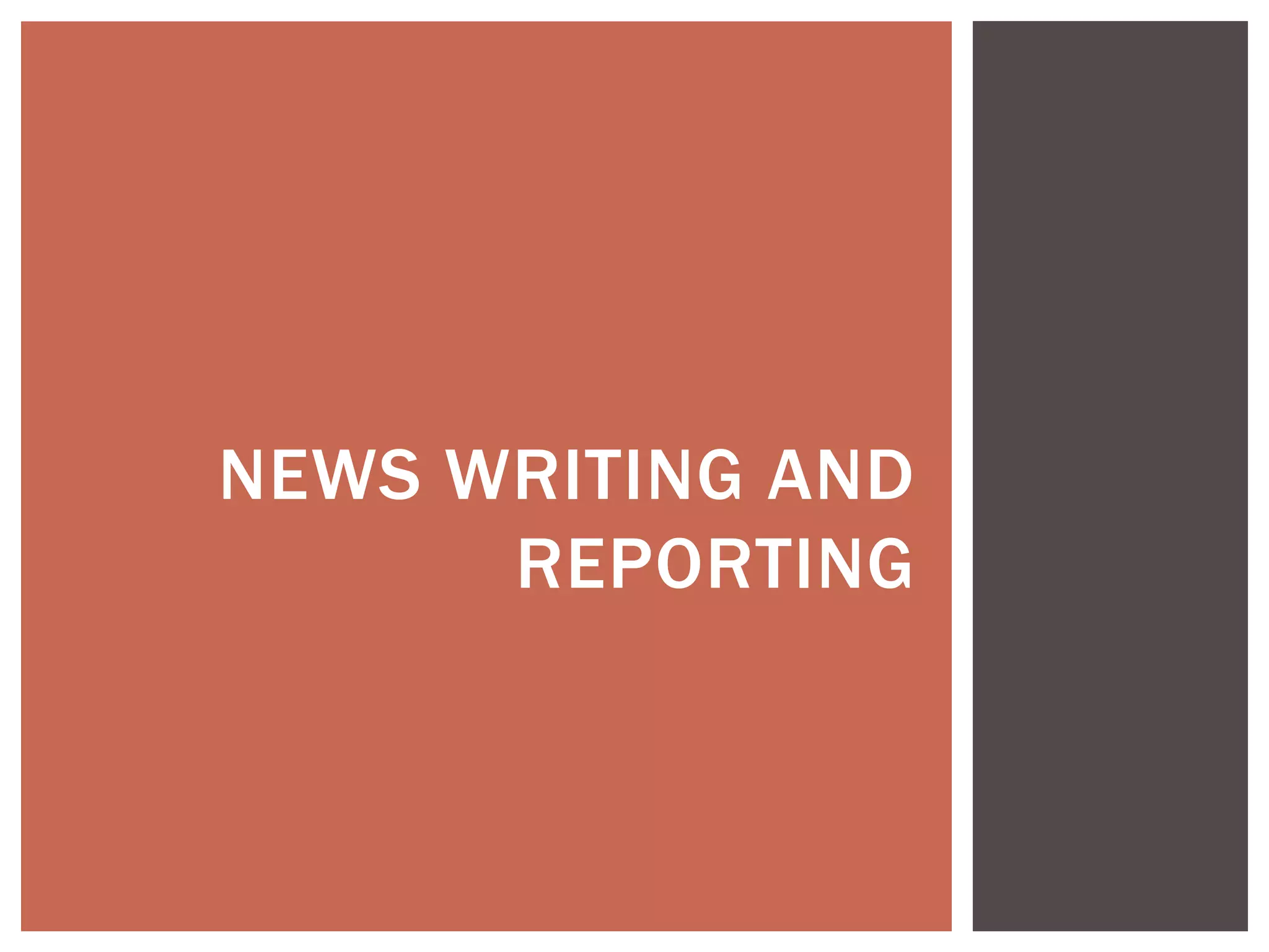 This document provides information about journalism and news writing. It defines what a journalist is and discusses different types of journalists by medium, task, and message covered. It also defines what constitutes news and its key characteristics like being factual, accurate, and unbiased. Additional sections cover the differences between facts and opinions, bias, tips for accurate reporting, subjective vs objective writing, editorializing, ensuring balance, and the importance of objectivity and accuracy. The document concludes with discussions on what makes something newsworthy, other news considerations, using the 5Ws and H format, and the inverted pyramid structure for news stories.