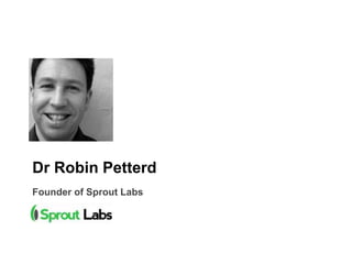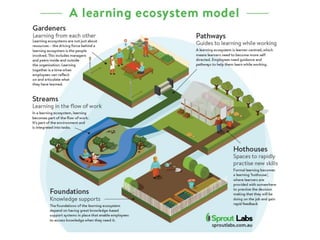 Dr. Robin Petterd, founder of Sprout Labs, discusses the development of digital learning platforms aimed at enhancing organizational learning through flexible, cloud-based systems like Glasshouse and Totara. The document highlights various features such as social learning, data-driven insights, and customized learning pathways that improve employee engagement and compliance. Case studies like Wattle Hill exemplify practical applications of these systems to enhance safety compliance and customer service in local councils.