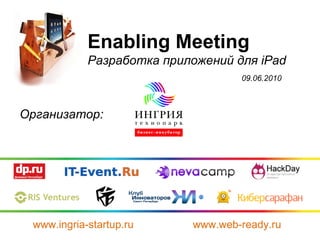 На мероприятии по разработке приложений для iPad 09.06.2010 участвовали 135 человек, из которых 91 посетили лично, а 274 посмотрели онлайн-трансляцию. В программе были 9 спикеров и обсуждение будущих возможностей рынка iPad, а также кейсы от разработчиков. Объявлен конкурс на лучшее iPad-приложение, победитель которого будет определен по количеству скачиваний до 01.08.2010.