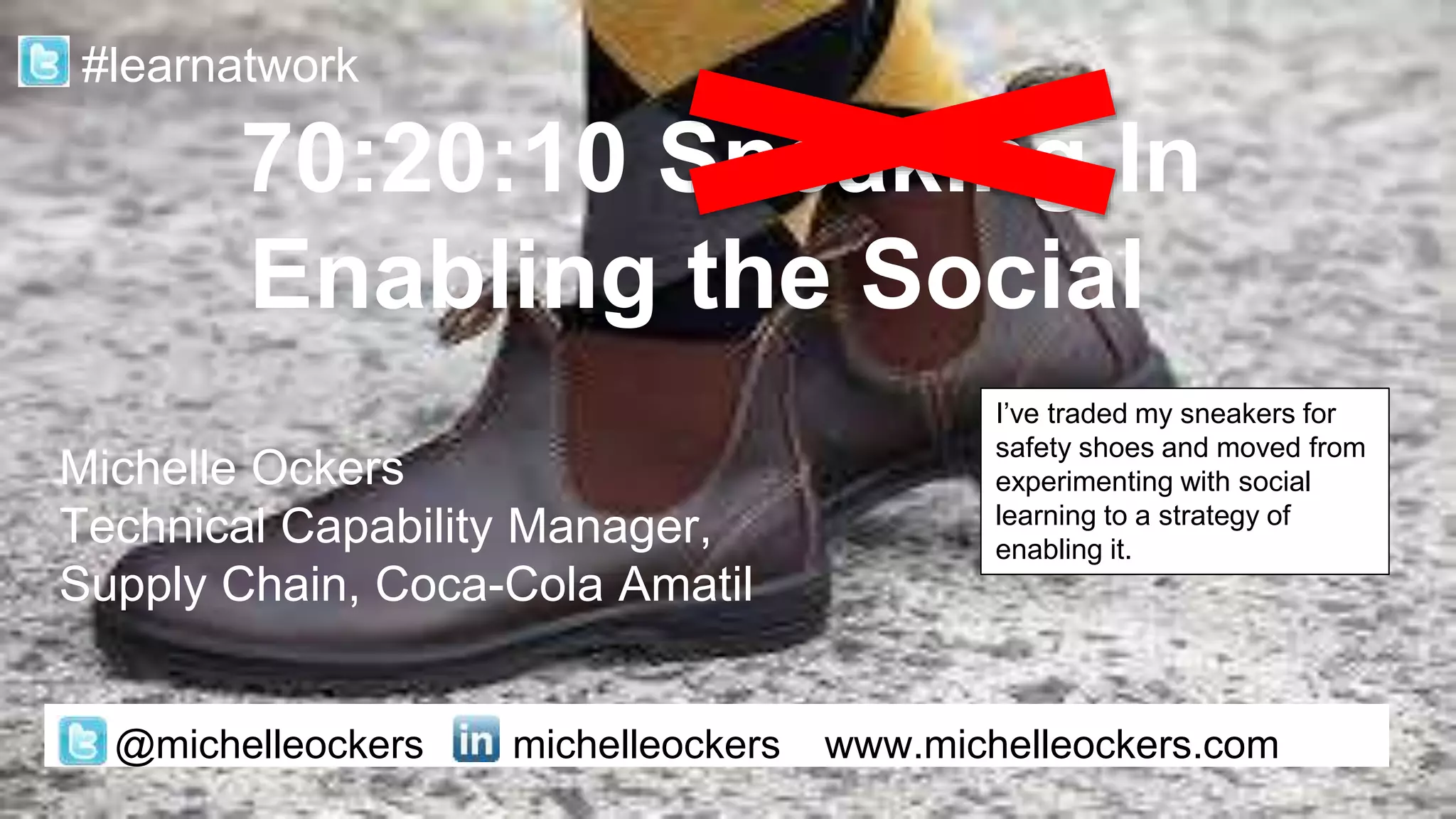 Michelle Ockers presented on her experience enabling social learning within Coca-Cola Amatil's supply chain organization. She initially focused on formal training programs but realized more opportunities existed for informal learning. Her team developed a new strategy emphasizing continuous workplace learning and social learning. Key initiatives include developing communities of practice, supplementing formal programs with social elements, and using tools to better enable sharing and collaboration across sites. Ockers worked to model social behaviors but found direct efforts did not drive changes. A new project is formulating a social learning strategy for engineering teams after analyzing current collaboration practices.