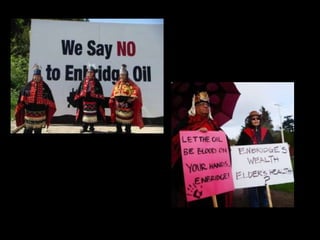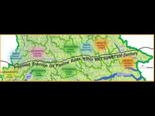The document summarizes key articles from the UN Declaration on the Rights of Indigenous Peoples related to indigenous peoples' rights to their traditional lands, territories, and resources. Article 25 recognizes indigenous peoples' spiritual relationship to their traditionally owned or used lands and territories. Article 26 establishes indigenous peoples' rights to lands and territories traditionally owned, occupied or otherwise used. Article 32 guarantees indigenous peoples the right to determine priorities and strategies for development of their lands and territories and requires states to obtain free and informed consent for projects affecting indigenous lands and resources.