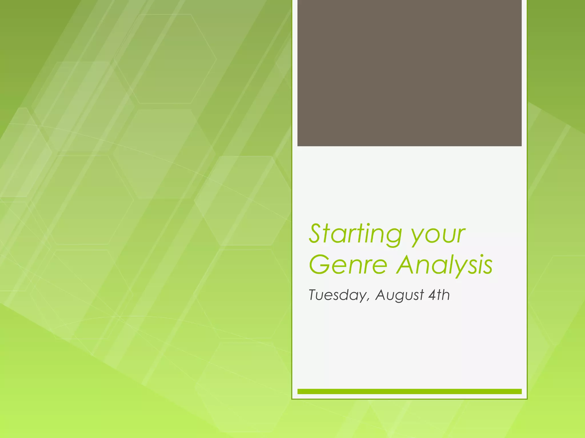 This genre analyzes articles related to legal studies on the topic of hazing. The articles address how hazing is defined differently but is generally wrong. They call for stricter penalties on administrators who do not prevent hazing and for improved hazing prevention programs. The authors of these articles are law professors and attorneys writing to educate those in the legal community on the issues surrounding hazing and how to address them. The articles include facts, definitions of hazing, and recommendations to establish credibility and fully define the topic for the intended legal audience.