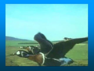 Flying in a V formation allows geese to fly farther and more efficiently by reducing wind resistance. When a goose falls out of formation, it feels increased resistance and quickly returns. Staying united with those going in the same direction reduces individual effort. Leadership is shared, with different geese taking turns at the front. Geese encourage each other with calls to maintain speed. When one goose is sick or injured, others care for it until it recovers or dies. Working together makes life easier and more fulfilling.