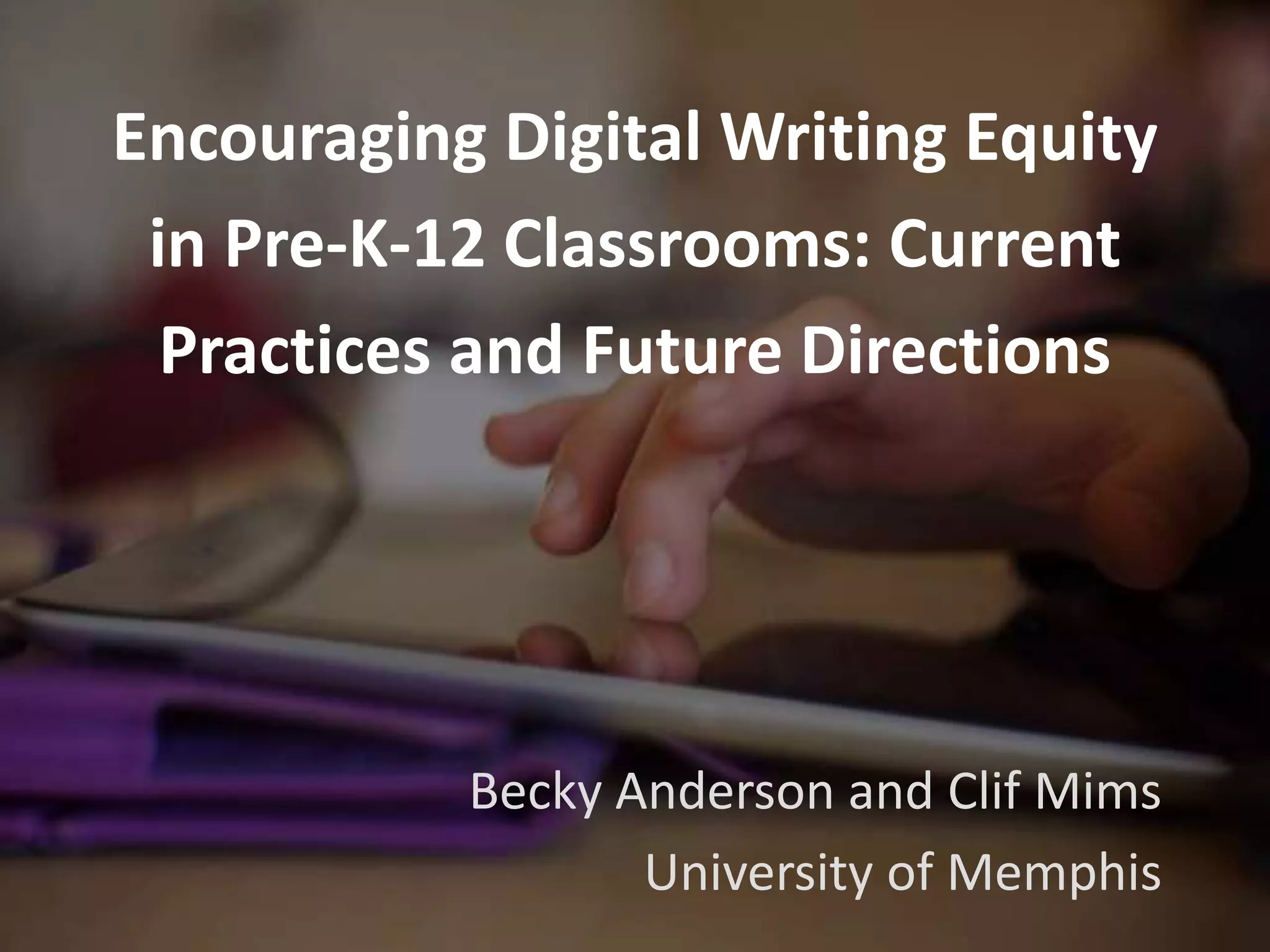 The document discusses current practices and future directions for encouraging digital writing equity in pre-K-12 classrooms. It highlights various research topics, including the integration of technology and multimedia in writing instruction, and emphasizes the need for educators to recognize students' out-of-school experiences as valuable resources for learning. The document also outlines specific research findings related to technology use in literacy education and the implications for instructional practices in diverse learning environments.