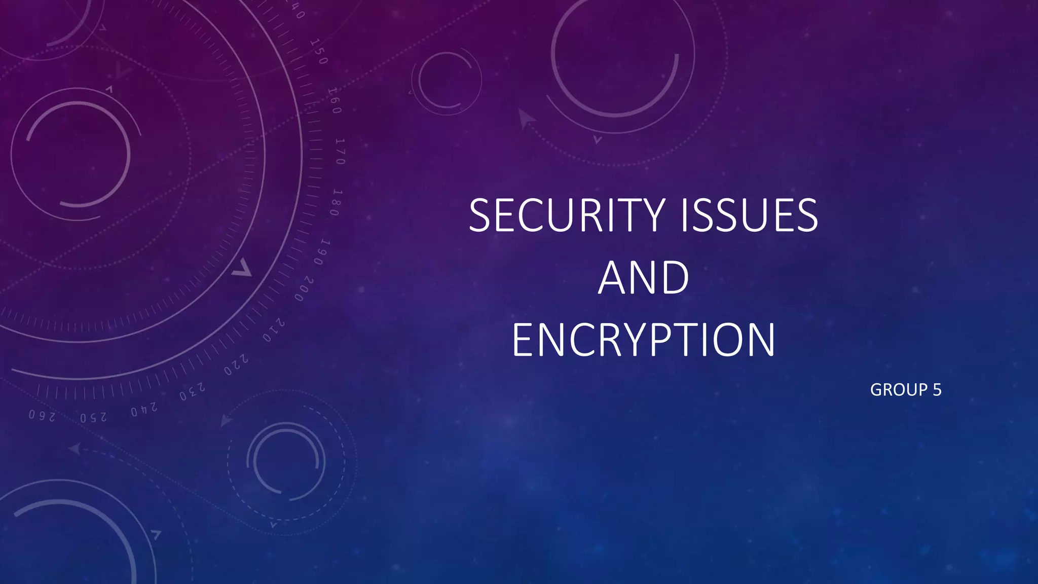 The document summarizes security issues related to e-commerce and encryption techniques. It discusses concepts like confidentiality, integrity, availability, authenticity, non-repudiation and describes encryption methods like SSL, digital signatures, and message authentication codes. It also covers encryption techniques like symmetric key encryption using DES/3DES and asymmetric key encryption using RSA cryptography. The document is presented by a group consisting of 5 members and contains details of security issues, encryption standards and methods.