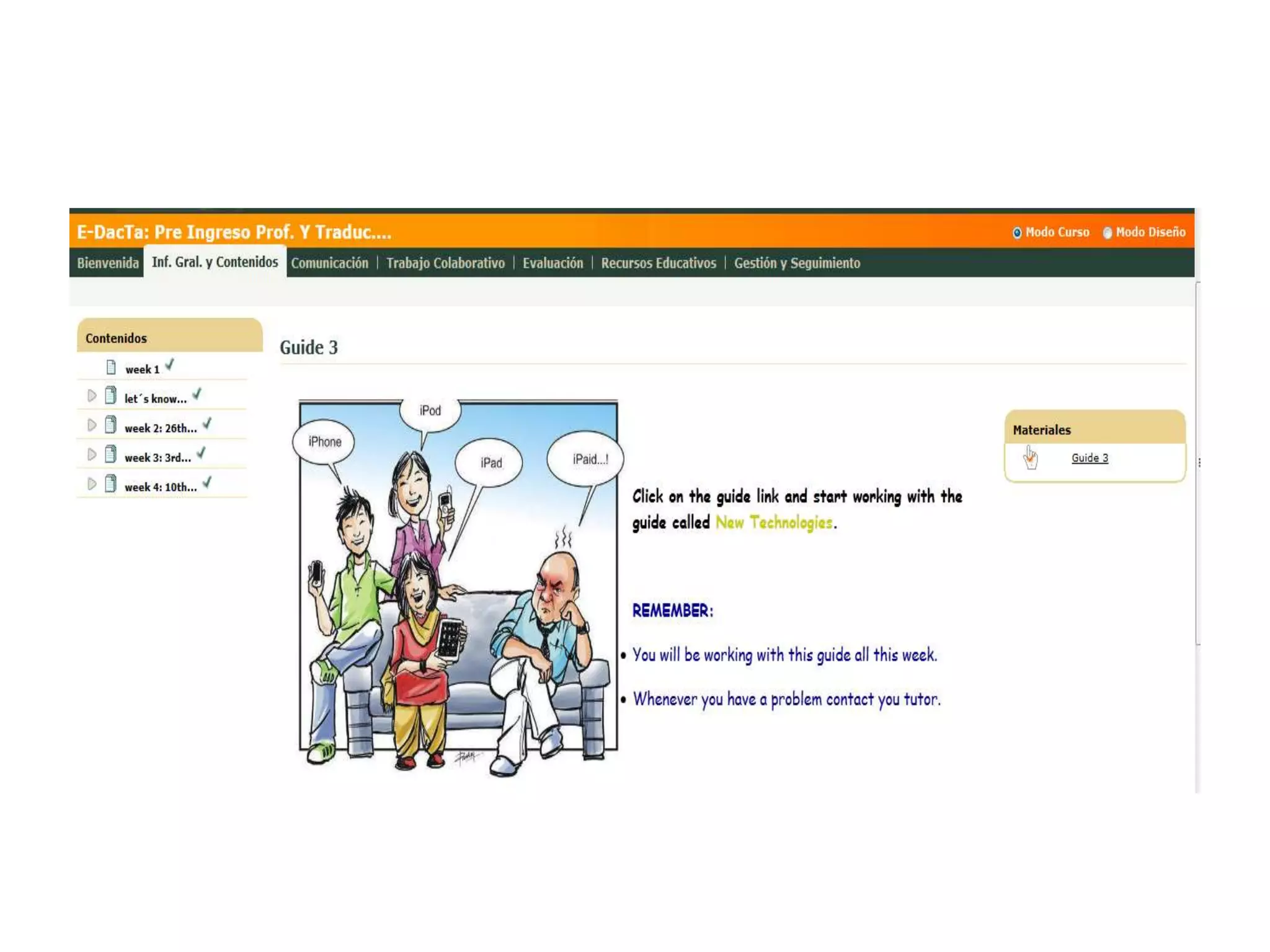 The document discusses the integration of information and communication technologies (ICT) in English language teaching through a program that emphasizes computer-mediated communication and computer-assisted language learning (CALL). It outlines the evolution of CALL, stages of its normalization in educational practice, and the transformative impact of digital tools on teaching methodologies. Additionally, it highlights various web 2.0 tools and emphasizes the need for educators to rethink their teaching approaches to incorporate these technologies effectively.