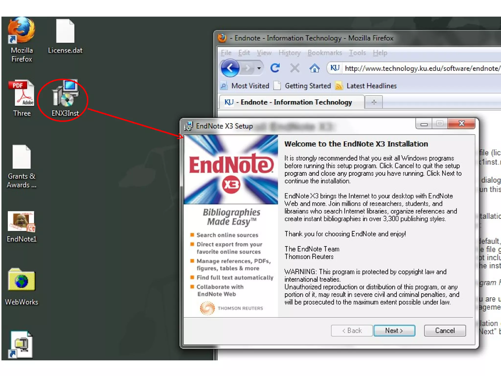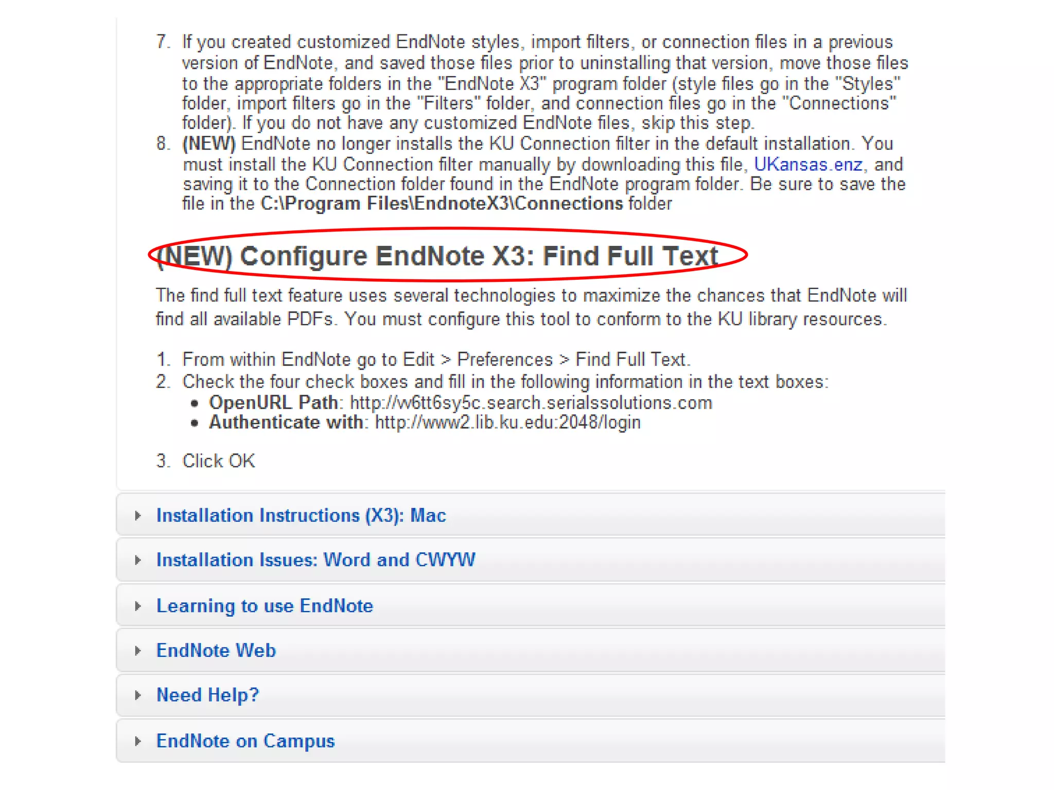 The document is a comprehensive guide on using EndNote X3 for managing bibliographies and citations in research, particularly aimed at graduate students and faculty at the University of Kansas. It includes installation instructions, tips for creating an EndNote library, importing references, and utilizing various databases for research. Additionally, it provides links to more resources, troubleshooting advice, and information about upcoming classes related to EndNote usage.