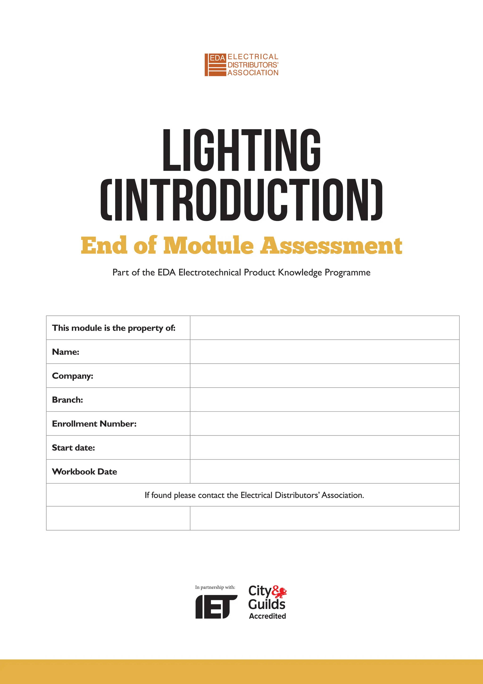 The document outlines the assessment process for the EDA Electrotechnical Product Knowledge Programme focusing on lighting, including a declaration of authenticity required from participants. It details the structure of the assessment comprising multiple-choice, short, and long questions, along with marking criteria and grading systems. Additionally, it includes guidelines for research and referencing, highlighting the importance of original work and proper citations.