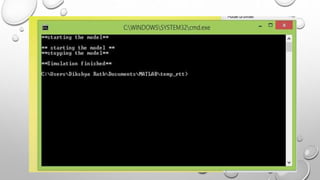 This document proposes the design of a machine-to-machine communication device for medical applications and disaster management. The device would take health data like pulse, heart rate, or temperature from a person and send it over a local area network to a monitoring device. The monitoring device would analyze the data and check if any thresholds are exceeded, and could warn of health hazards or regulate drunk driving. A video conferencing feature is included to allow direct communication between a patient and healthcare provider. The current work involves connecting sensors like temperature sensors to a Raspberry Pi, sending the data to a laptop over a network, and displaying results. Further work planned includes adding pulse sensors and refining the system for less human interference and faster operation.