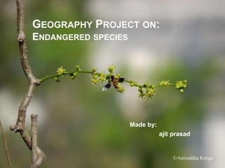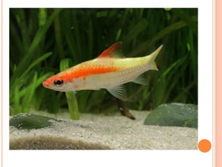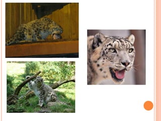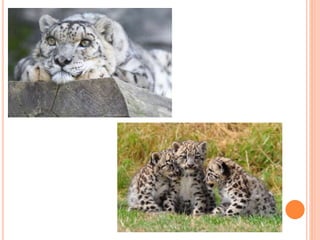 Sahyadria denisonii, also known as the Denison barb or red-line torpedo barb, is a species of cyprinid fish endemic to rivers in Western Ghats, India. It is listed as endangered due to overexploitation for the aquarium trade. The fish has a torpedo-shaped body with silver scales and distinctive red and black lines. Conservation efforts aim to breed it in captivity to boost wild populations. Snow leopards are a large cat found in Central and South Asia. Listed as endangered, their population is estimated between 3,920-6,390. They have thick fur and rosette markings, and live in mountainous areas between 3,000-4,500