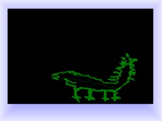 Es unanimal verd i ferotge, té una coa llarga i punxaguda, viu a la selva dins un pantà, i té la mandibula molt forçuda. Joan Marc