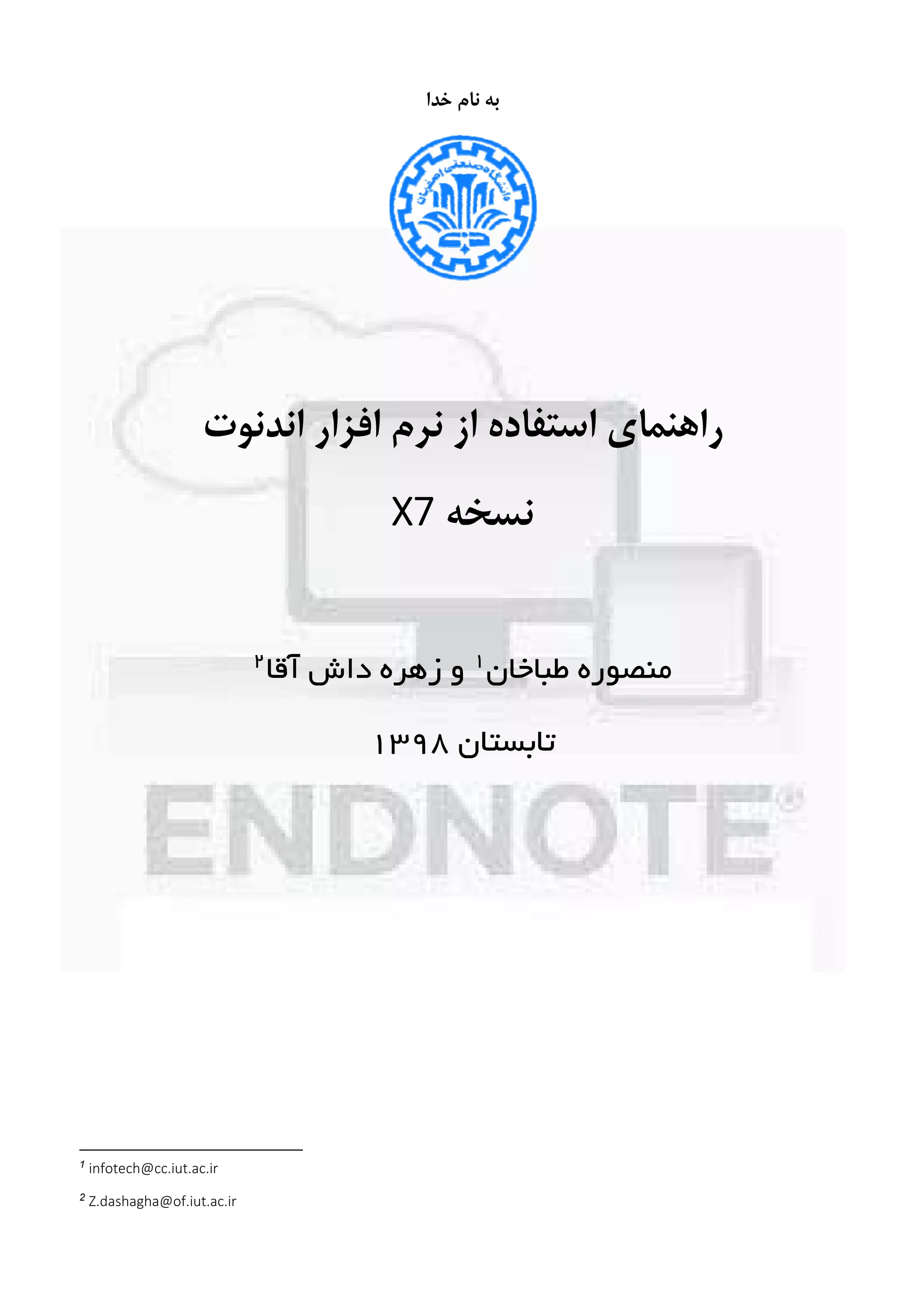 اﻓﺰار ﻧﺮم از اﺳﺘﻔﺎده ﻧﺴﺨﻪX7 ﻃﺒﺎﺧﺎن ﻣﻨﺼﻮره1 آﻗﺎ داش زﻫﺮه و2 ﺗﺎﺑﺴﺘﺎن1398 1 infotech@cc.iut.ac.ir 2 Z.dashagha@of.iut.ac.ir