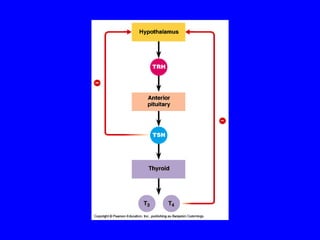The document discusses the chemical control of brain and behavior through the neuroendocrine system. It describes how hormones secreted by the hypothalamus and pituitary gland regulate other glands and body processes through feedback loops. Key topics covered include the types of hormones, hormone actions, locations and functions of the hypothalamus, pituitary and other endocrine glands, and their roles in homeostasis and stress response.