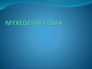 3. Myxedema coma is the severe manifestation of hypothyroidism leading to decreased mental status and hypothermia. It requires gradual rewarming and high dose thyroid hormone replacement.