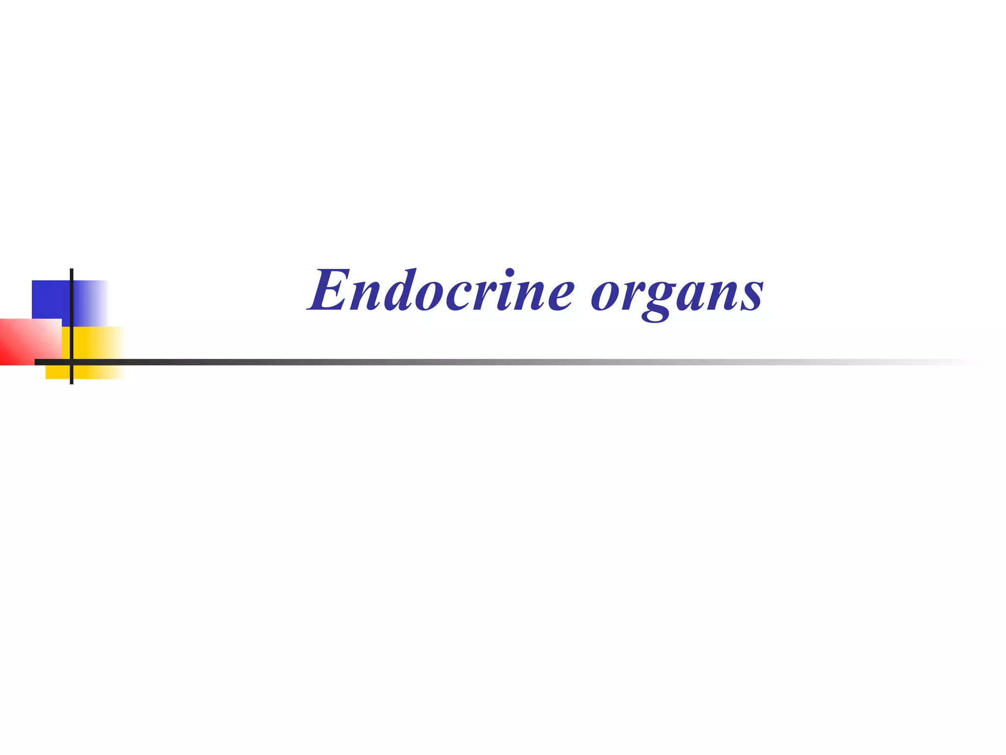 This document summarizes the major endocrine organs and their functions. It describes the classification of endocrine organs into central, peripheral, mixed and diffuse systems. It then details the key tissues and cells involved in hormone production for each organ, including the hypothalamus, hypophysis, thyroid gland, parathyroid glands, adrenal glands and pancreas. For each organ, it explains the histology, hormone production and regulation via feedback loops with other endocrine organs like the hypothalamus and hypophysis.