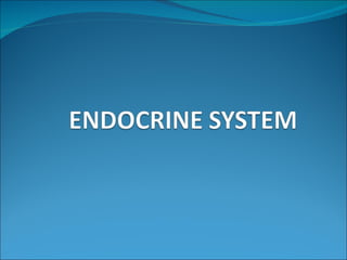 The endocrine system consists of glands that release hormones to regulate bodily functions. The major glands include the pituitary gland, thyroid gland, parathyroid glands, pancreas, adrenal glands, and gonads. Each gland produces specific hormones that target other glands or body systems to perform functions like calcium regulation, metabolism, growth, and reproduction. Hormones travel through the bloodstream and act through receptor pathways or nuclear receptors in cells.