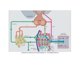 The endocrine system maintains homeostasis through the secretion of hormones directly into the bloodstream. It works more slowly than the nervous system to regulate processes like metabolism, tissue function, sleep, and development. Key endocrine glands include the hypothalamus and pituitary gland in the brain, thyroid and parathyroid glands in the neck, pancreas, adrenal glands above the kidneys, ovaries/testes, pineal gland and others. Each gland secretes specific hormones that target tissues to produce responses like growth, energy use, stress response, and reproduction. The hypothalamus controls many glands through the hypothalamic-pituitary axis.