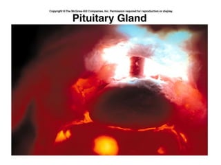 The endocrine system consists of glands that release hormones directly into the bloodstream, where they are distributed to target tissues and cells. The hypothalamus-pituitary complex controls many other endocrine glands. Oxytocin is known as the "bonding hormone" that facilitates social interactions, sexual and maternal behaviors, and plays a role in lactation and birth. Disorders of oxytocin expression have been linked to conditions like autism and schizophrenia. Too little or too much growth hormone can cause dwarfism, gigantism, or acromegaly at different stages of life.