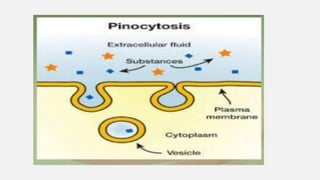 The document explains two processes by which cells move materials across their membranes: endocytosis and exocytosis. Endocytosis involves three types—receptor mediated endocytosis, phagocytosis, and pinocytosis—where cells either ingest large particles or dissolved substances. Phagocytosis, discovered by Ilya Metchnikoff, involves the engulfing of solid particles, while pinocytosis focuses on the intake of liquid or dissolved nutrients.