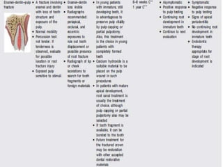 Cracked tooth syndrome is an incomplete fracture of tooth structure causing sharp pain on biting. Risk factors include excessive forces, weakened tooth structure, dental materials or rare events. Symptoms are biting pain and sensitivity. Diagnosis involves visual inspection, transillumination, dyes or bands to detect the crack