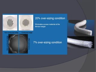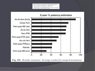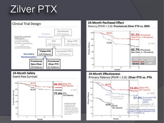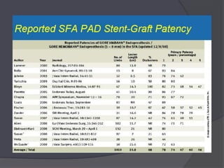 The document discusses peripheral arterial disease and endovascular treatment options. It provides an overview of various devices for treating peripheral artery disease including nitinol stents, stent-grafts, atherectomy devices, specialized balloons, and crossing devices. It then reviews the evidence from studies on these different technologies and discusses considerations for which devices may be best suited for different types of lesions.