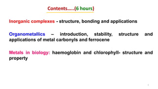 • Inorganic/coordinationcomplex is a molecule containing one or multiple metal