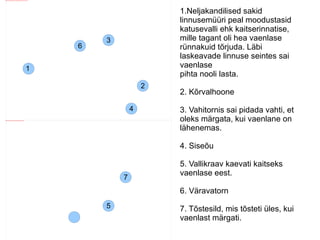 1 1.Neljakandilised sakidlinnusemüüri peal moodustasid katusevalli ehk kaitserinnatise, mille tagant oli hea vaenlase rünnakuid tõrjuda. Läbi laskeavade linnuse seintes sai vaenlase pihta nooli lasta. 2. Kõrvalhoone 3. Vahitornis sai pidada vahti, et oleks märgata, kui vaenlane on lähenemas. 4. Siseõu 5. Vallikraav kaevati kaitseks vaenlase eest. 6. Väravatorn 7. Tõstesild, mis tõsteti üles, kui vaenlast märgati. 4 5 3 6 7