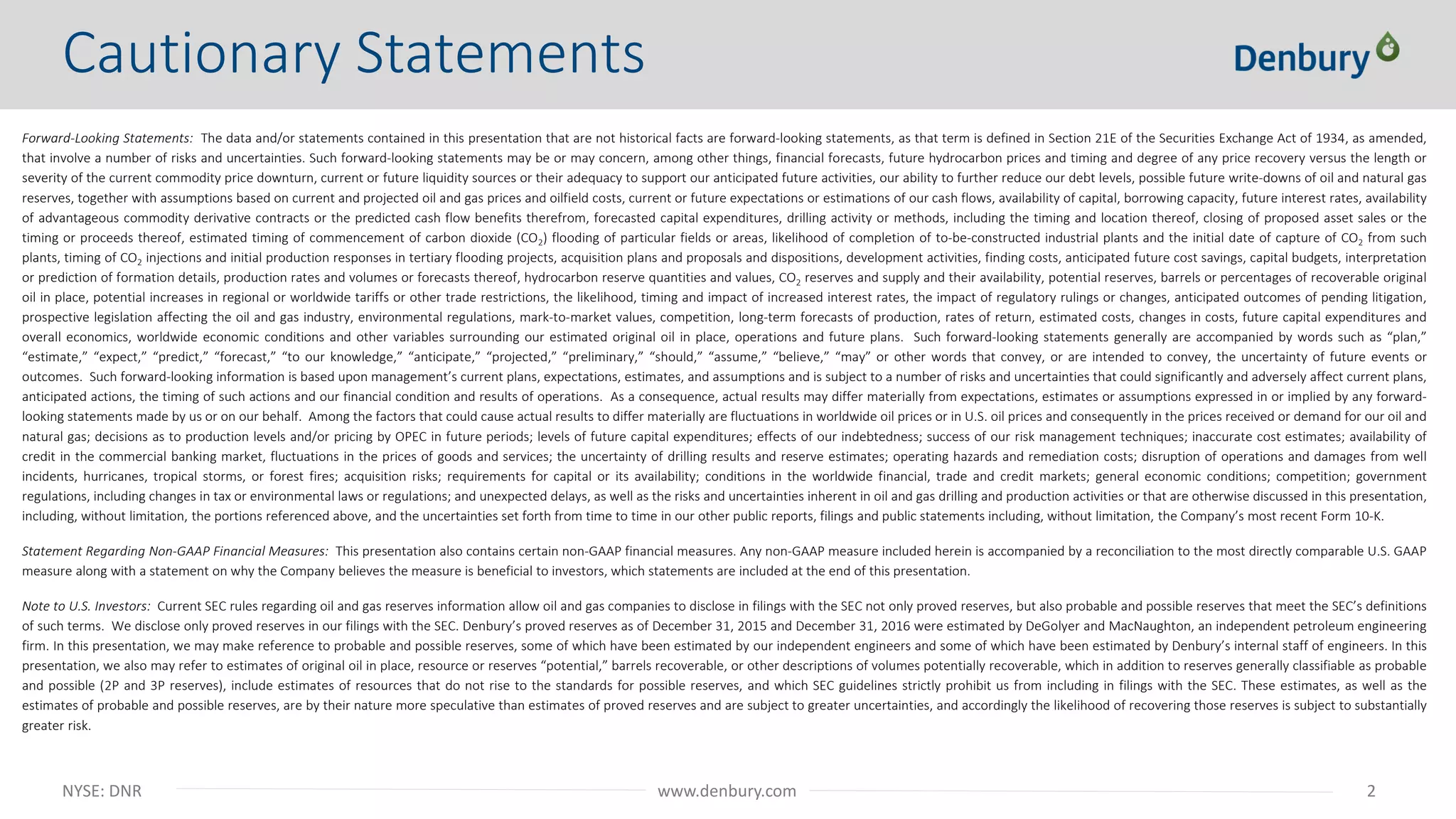 Denbury Resources provides a presentation on their company and operations. Some key points: