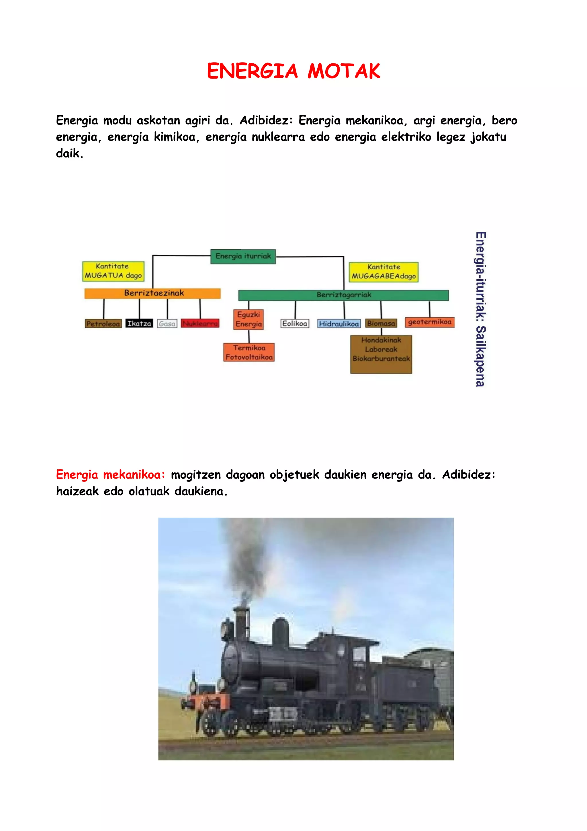 Energia mekanikoa: mogitzen dagoan objetuek daukien energia da. Adibidez: