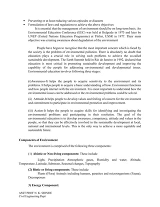 (i)Awareness-It helps the people to acquire sensitivity to the environment and its