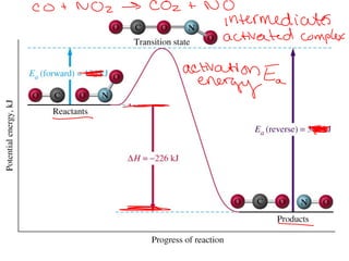 A potential energy diagram shows the energy of reactants and products in a chemical reaction over the course of the reaction. When a catalyst is added, it creates an alternative reaction pathway that requires less energy to reach the products by lowering the activation energy of the reaction. This speeds up the reaction by making it easier for the molecules to undergo the transformation from reactants to products.
