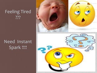 This document presents a creative brief for an energy drink called Volt 1000. It provides background on the product, which is positioned as a refreshing drink that gives an energy lift to combat tiredness from sports, studying, work or other activities. The target audiences are college/B-school students needing energy for lectures and middle-aged adults experiencing midlife crises. The key perceptions are that Volt 1000 improves performance, concentration, motivation and overall well-being. Its main competitors are other energy drinks like Red Bull, Gatorade and Powerade. The single minded proposition is that Volt 1000 can unleash your spark and combat tiredness.