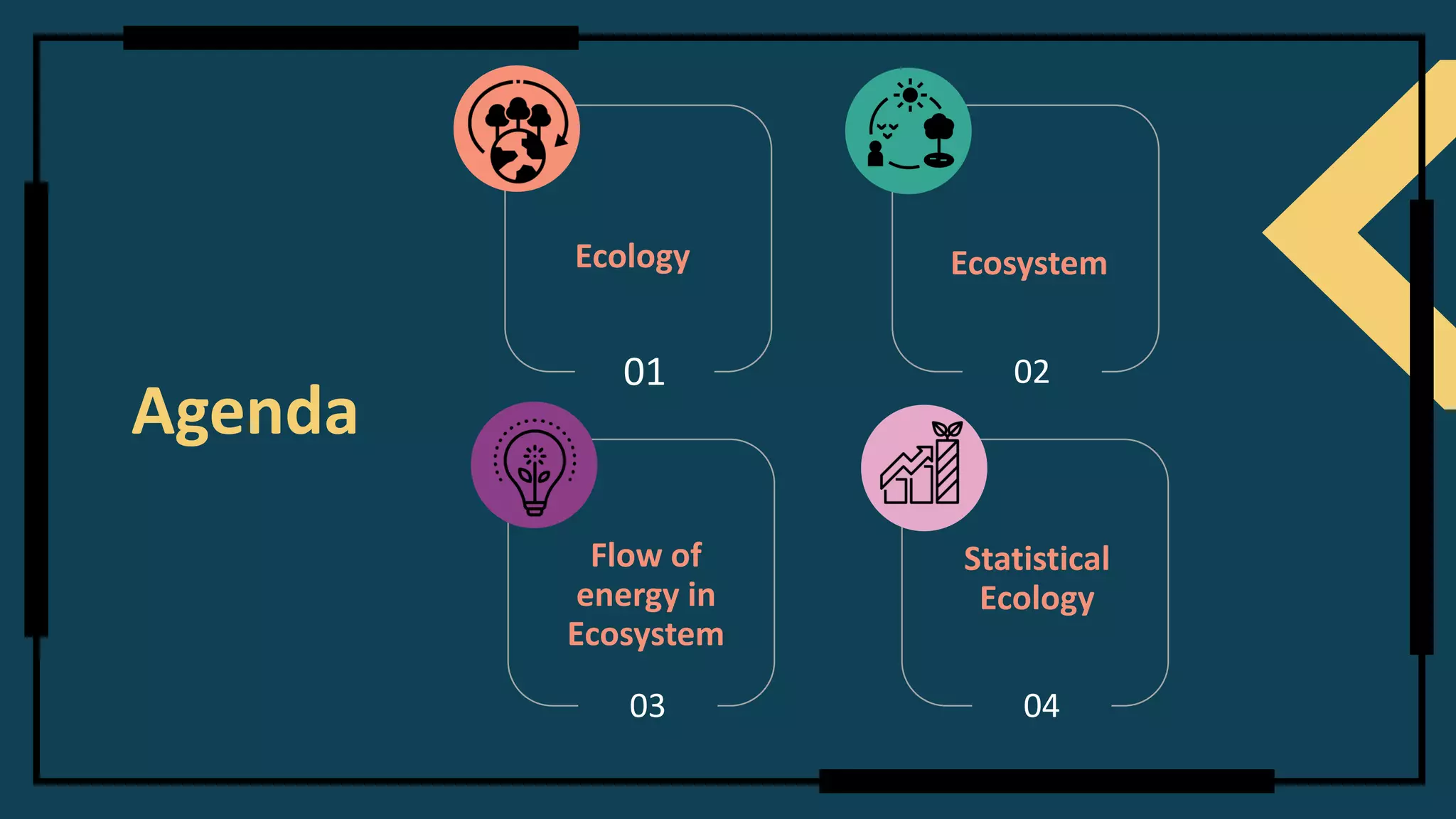 The document provides an overview of energy flow in ecosystems and statistical ecology. It discusses key topics such as:
