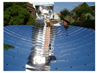 The document discusses sustainable infrastructure solutions, focusing on energy use, appropriate technologies, and the importance of conservation. It highlights various forms of energy, including mechanical, chemical, and renewable sources such as solar, wind, and biogas, emphasizing their efficiency and potential for community applications. The document also touches on the importance of measuring ecological footprints and designing systems for carbon neutrality to promote sustainable living practices.