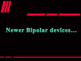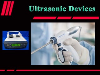 2. It describes several modern energy devices including Ligasure, Gyrus/Plasmacision, Enseal, Harmonic Scalpel, and Thunderbeat, comparing their features such as vessel sealing ability, thermal spread, and cost effectiveness.
