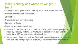 The document discusses the three energy systems that provide energy for physical activity: