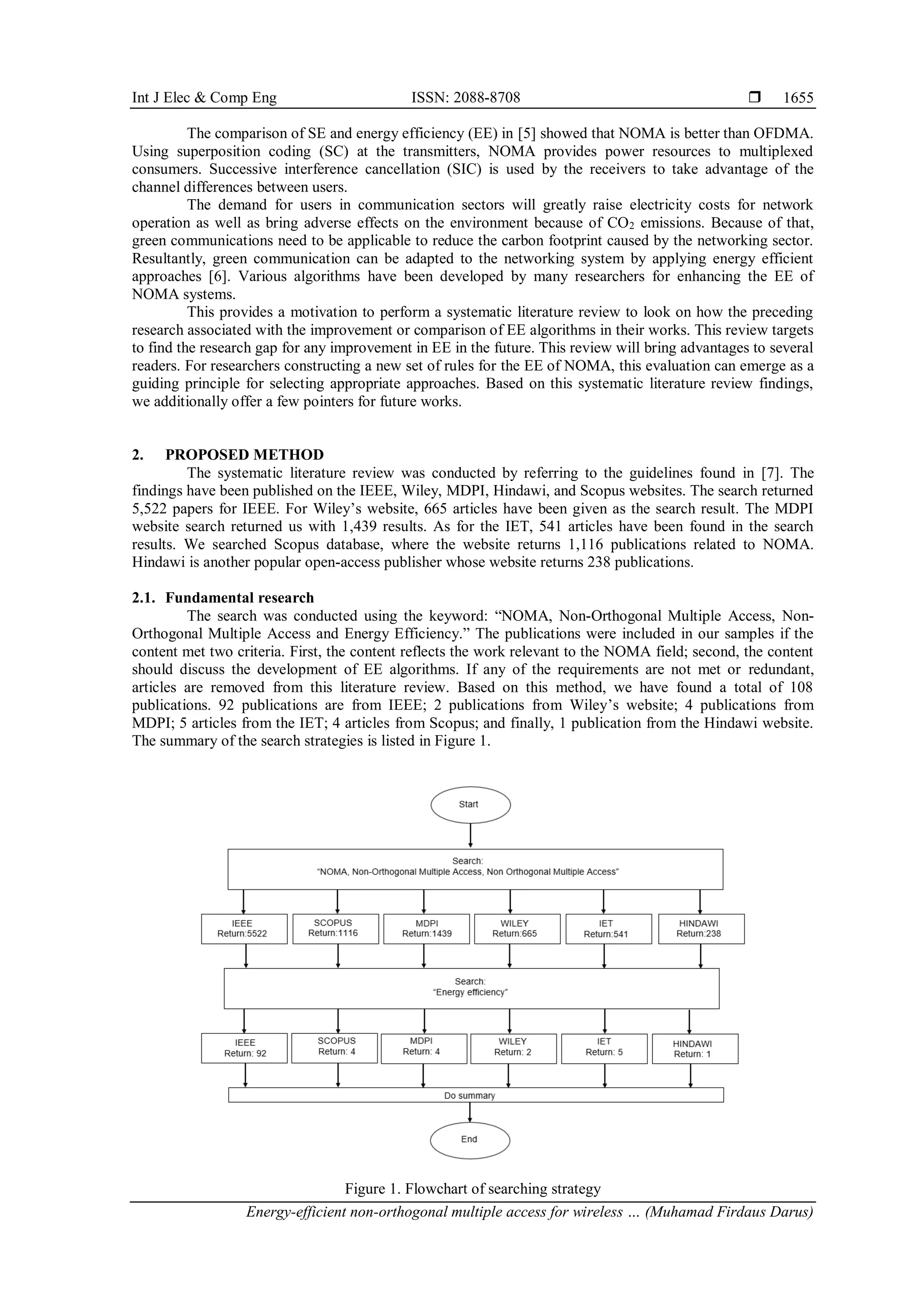 The document presents a systematic literature review on energy-efficient non-orthogonal multiple access (NOMA) for wireless communication systems, highlighting NOMA's potential to enhance throughput and spectrum efficiency in next-generation networks. It categorizes various research efforts into 19 subcategories related to energy efficiency, providing insights into improvements and future research directions, especially in applying machine learning techniques. Overall, the findings indicate that NOMA significantly contributes to energy efficiency in wireless communications, addressing environmental impacts and operational costs.