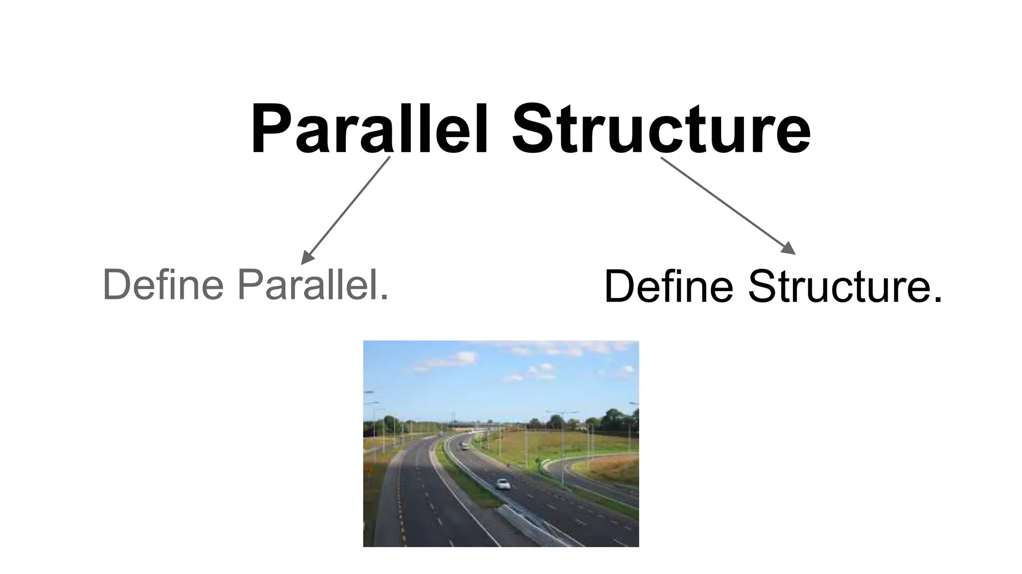 This document discusses parallel structure and provides examples of its use. It defines parallel structure as matching grammatical structure in different parts of a sentence. It gives two examples from Shakespeare and Martin Luther King Jr where they use parallel structure for emphasis and rhythm. It also provides examples for students to practice identifying parallel and non-parallel structures, and rewriting sentences to make the structures parallel.