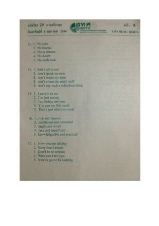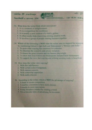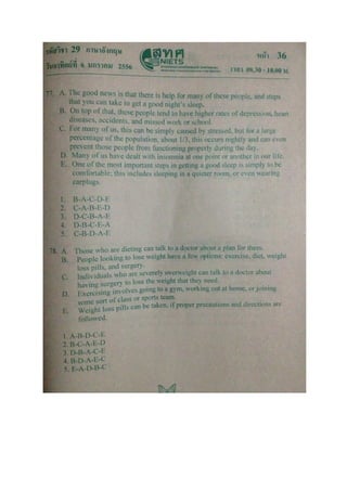 2556 ข้อ เฉลย ข้อ เฉลย ข้อ เฉลย ข้อ เฉลย 1 3 21 3 41 5 61 2 2 4 22 1 42 1 62 3 3 5 23 3 43 5 63 2 4 3 24 3 44 2 64 2 5 4 25 1 45 3 65 1 6 4 26 2 46 4 66 2 7 3 27 5 47 2 67 4 8 4 28 1 48 1 68 5 9 4 29 4 49 4 69 2 10 1 30 4 50 4 70 5 11 1 31 1 51 4 71 4 12 2 32 3 52 1 72 4 13 3 33 4 53 4 73 1 14 3 34 5 54 3 74 1 15 2 35 3 55 5 75 5 16 4 36 1 56 5 76 1 17 3 37 2 57 3 77 3 18 1 38 5 58 4 78 4 19 4 39 4 59 1 79 5 20 5 40 3 60 2 80 2