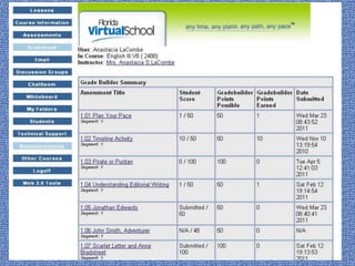 This document provides information for students taking English III. It introduces the teachers, explains how to set up audio for online sessions, and outlines how the course is structured. The course covers American literature from the Colonial period to present across two semesters. Students will study literature in its historical context and learn journalistic skills. Required books and homework submission procedures are also outlined.