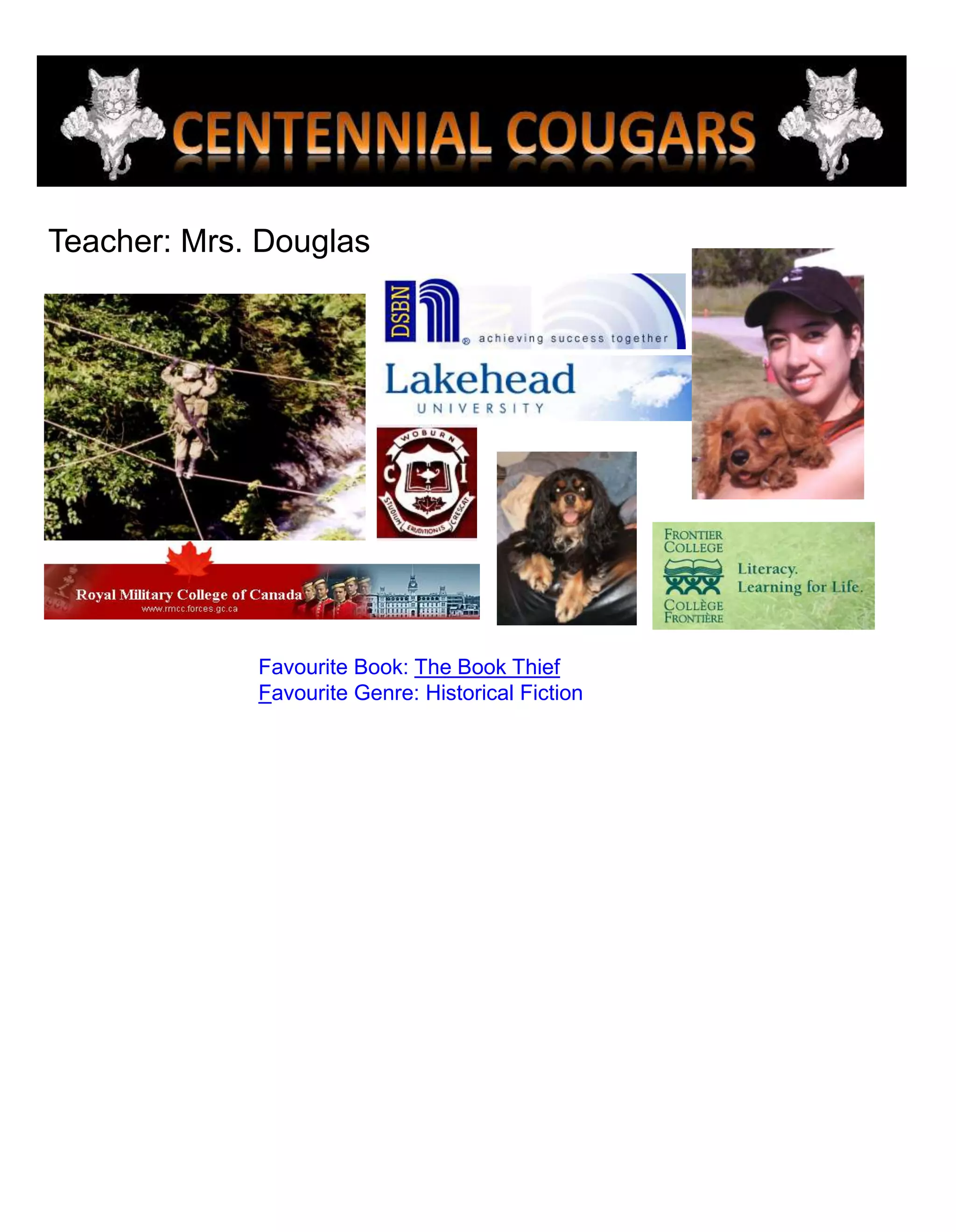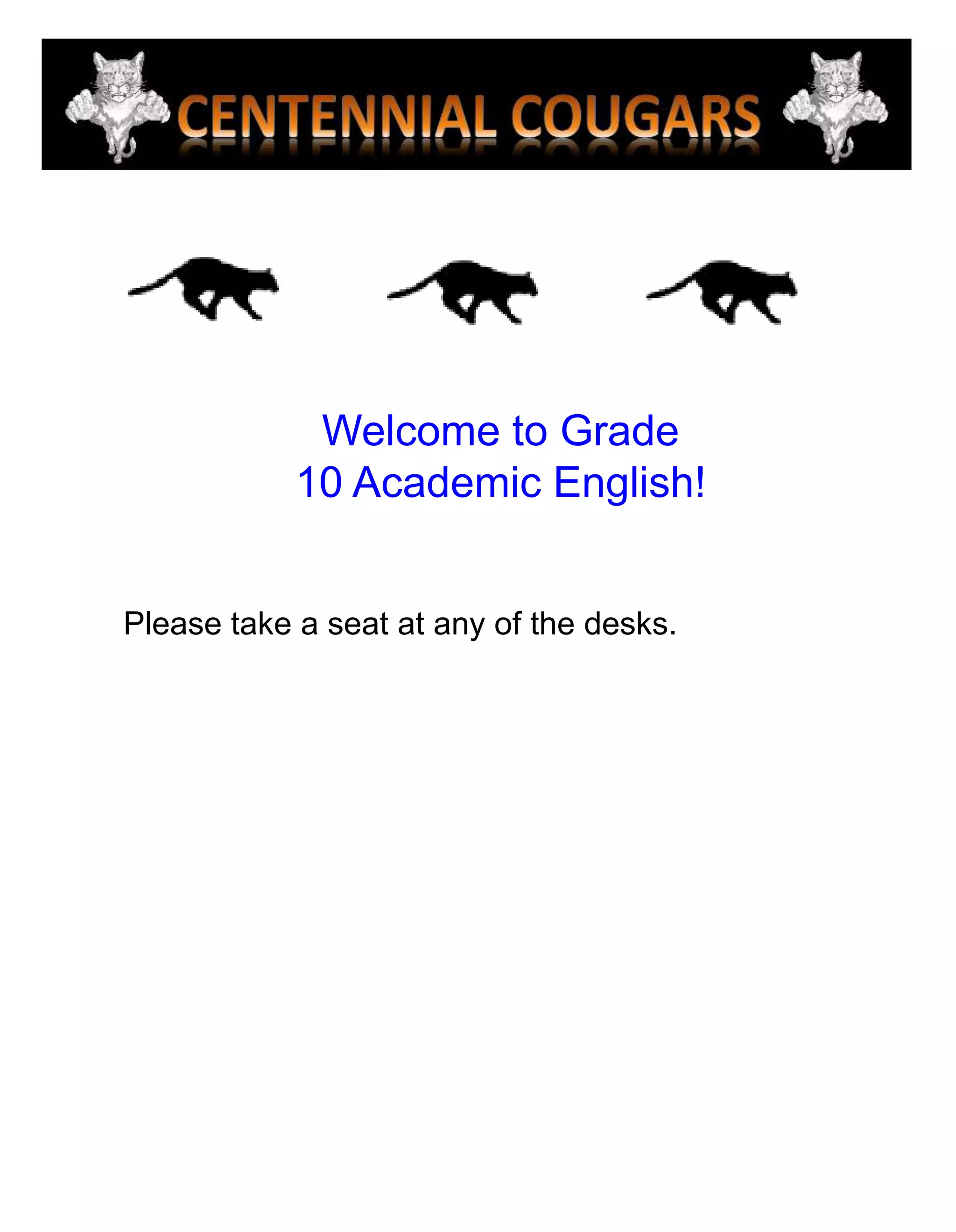 This document provides information for students taking Grade 10 Academic English. It introduces the teacher, Mrs. Douglas, and her favorite book and genre. It outlines plans to take literary journeys to Ancient Rome and Germany during World War 2. It also lists the course prerequisites, unit titles and times, assessment breakdown, attendance rules, and offers bonus marks for students who introduce the teacher to new educational technology.