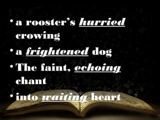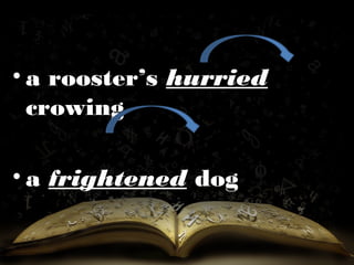 This document discusses participles, which are verb forms used as adjectives. It notes that participles can be in the present participle form, ending in "-ing", or the past participle form, ending in forms like "-en", "-d", or "-ed". Examples are given of participles modifying nouns, like "written message", "dripping clothes", and "bent twig". The difference between a verb and participle use is also illustrated with examples.