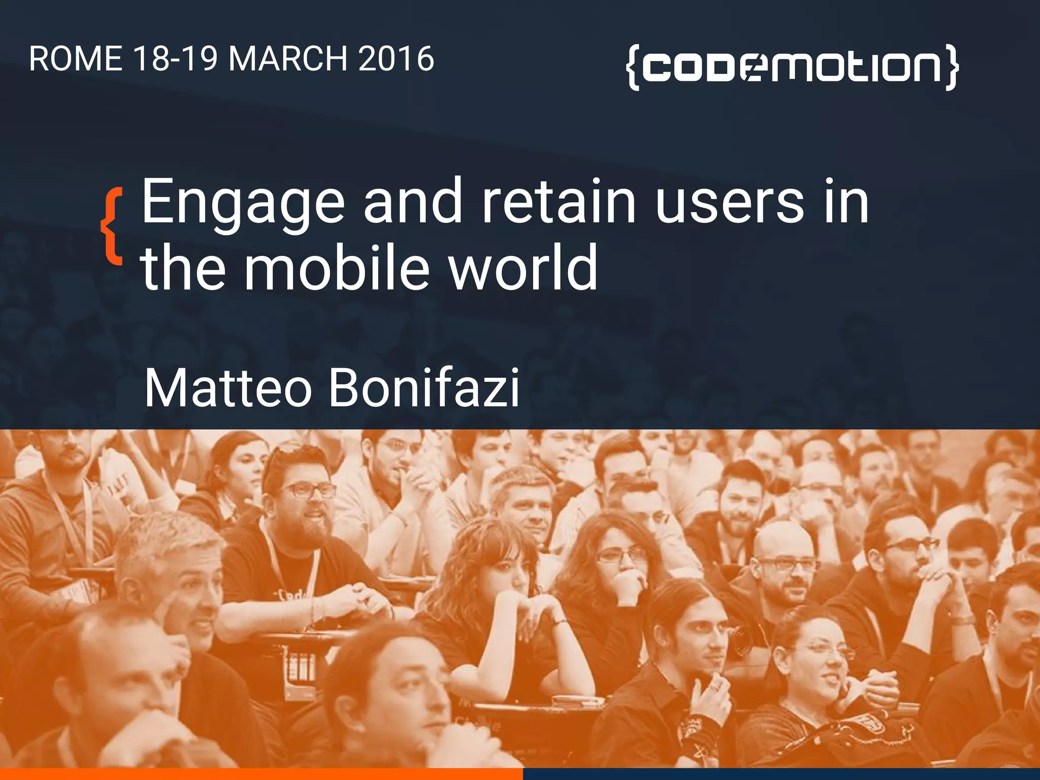 The document presents strategies for user engagement and retention in mobile applications, focusing on user acquisition through app invites and app indexing. It emphasizes the importance of app usage statistics, noting that many downloaded apps remain unused, and offers coding examples for implementing app invites and indexing. The author, Matteo Bonifazi, shares insights from his experience as an Android developer and provides links for further resources.