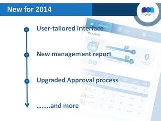 New features are being added to Engage121 in 2014, including a user-tailored interface allowing users quick access to relevant areas, an upgraded approval process that allows batches of posts to be reviewed in advance, and enhanced reporting including performance of brand posts and ability to track targets. Additional updates include improvements to geo-targeting, replying to comments, searching asset libraries, and advertising capabilities like viewing audiences and boosting posts.